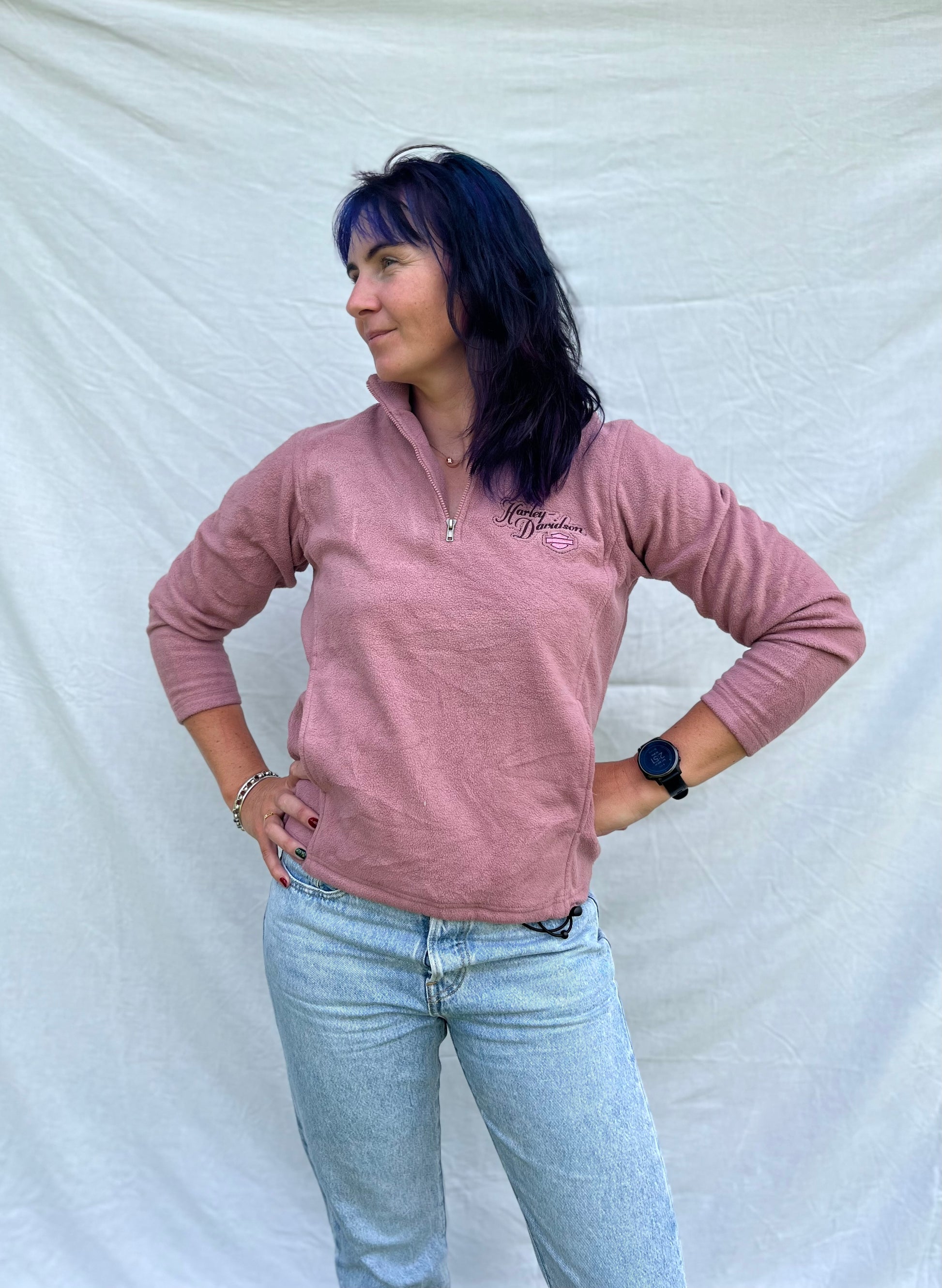 1/4 zip Harley Davidson Fleece, drawstring round the bottom
