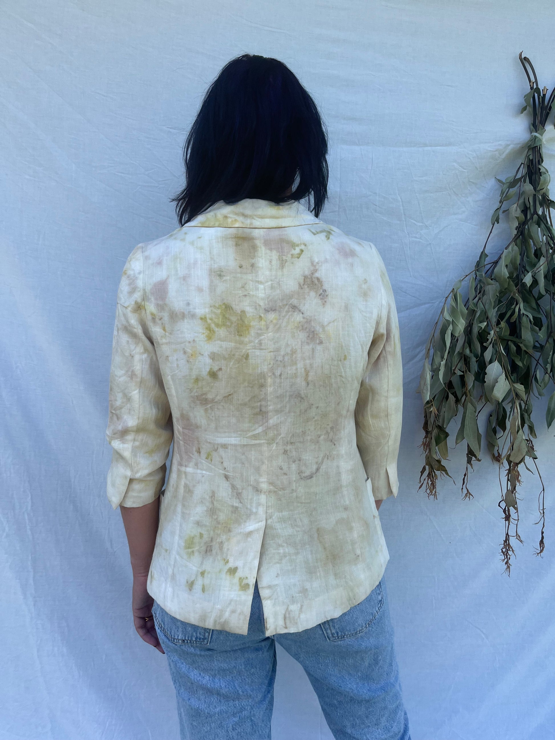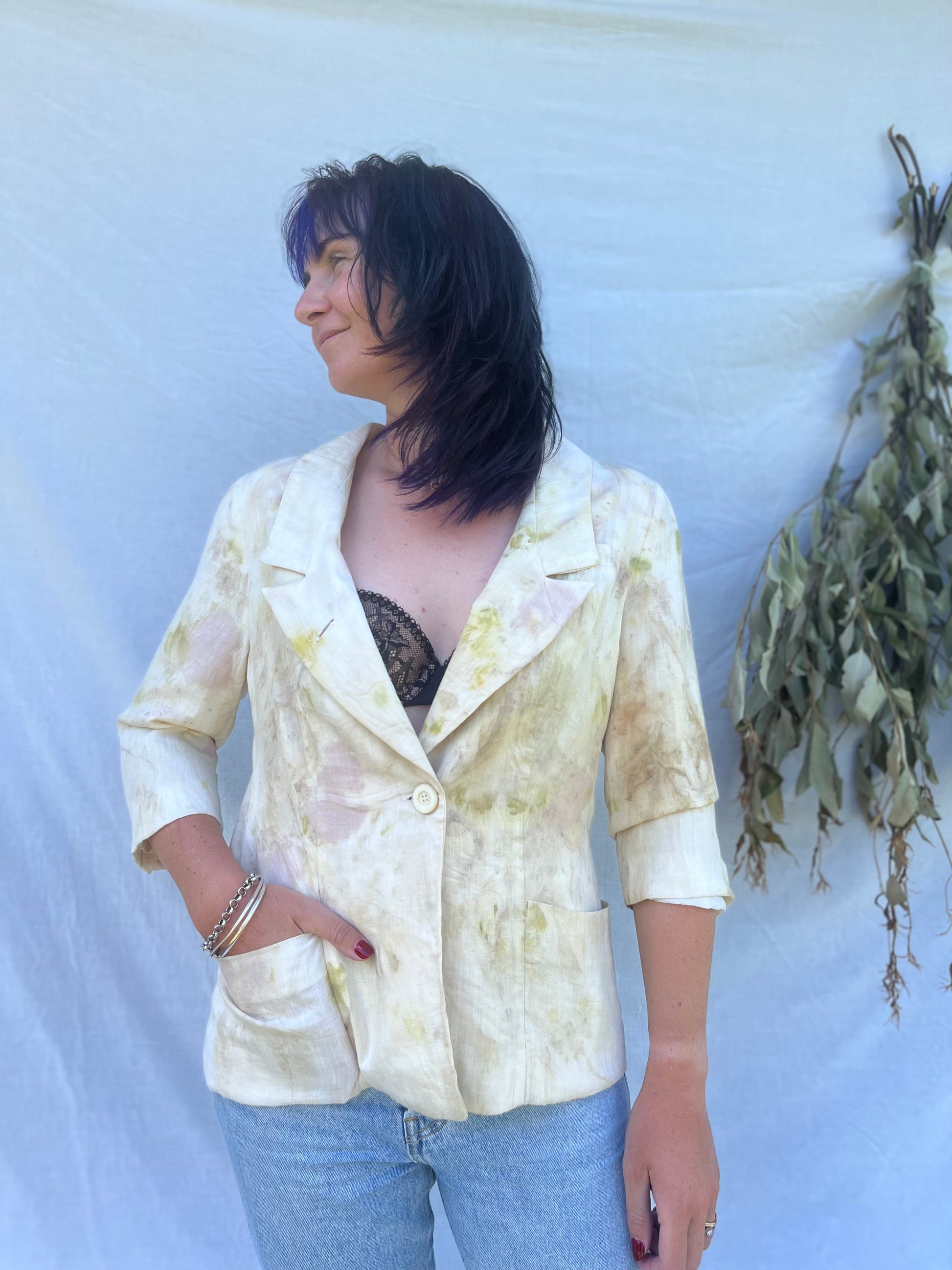 This garment has been eco-printed and bundle-dyed using natural processes and plants.