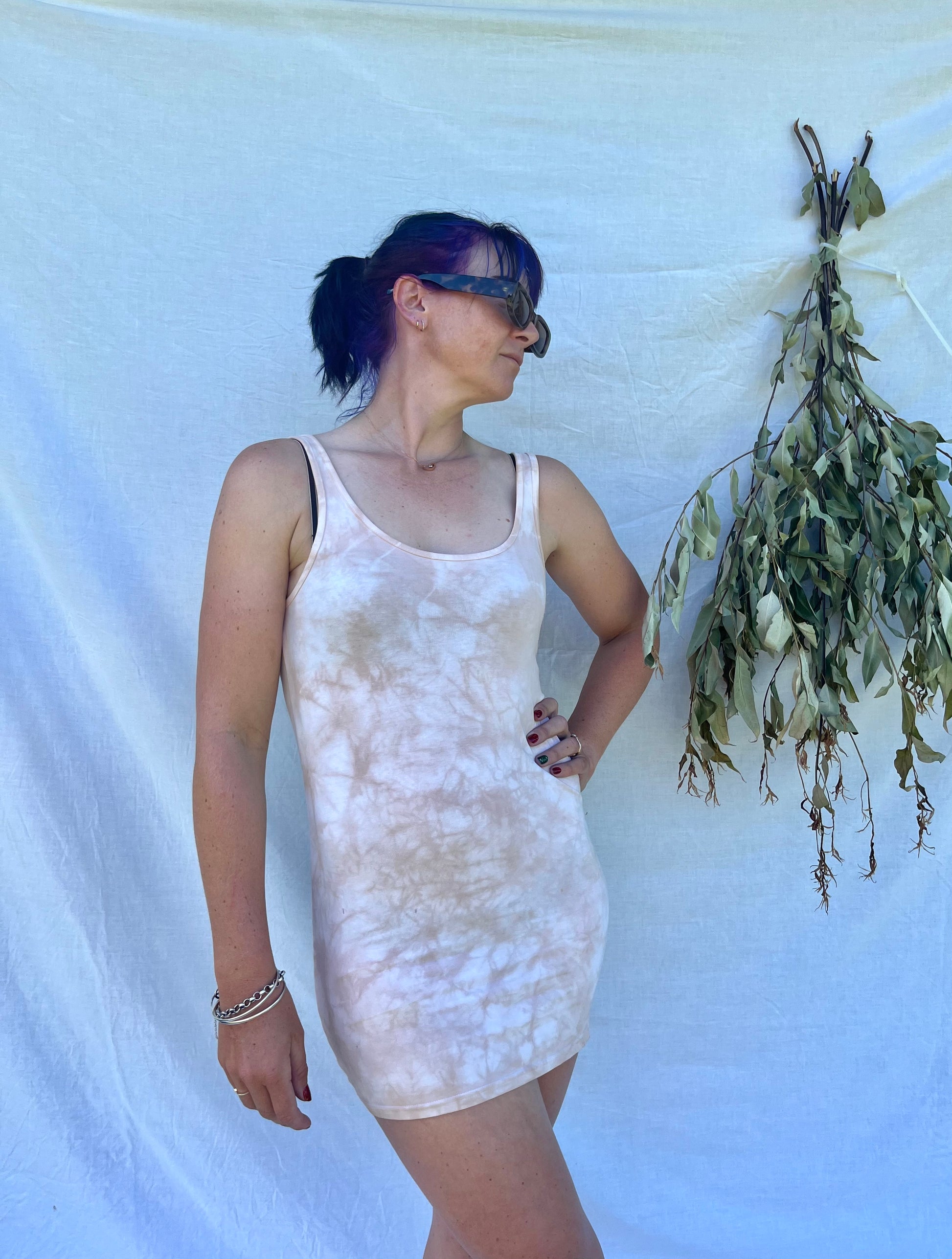 This garment has been eco-printed and bundle-dyed using natural processes and plants.