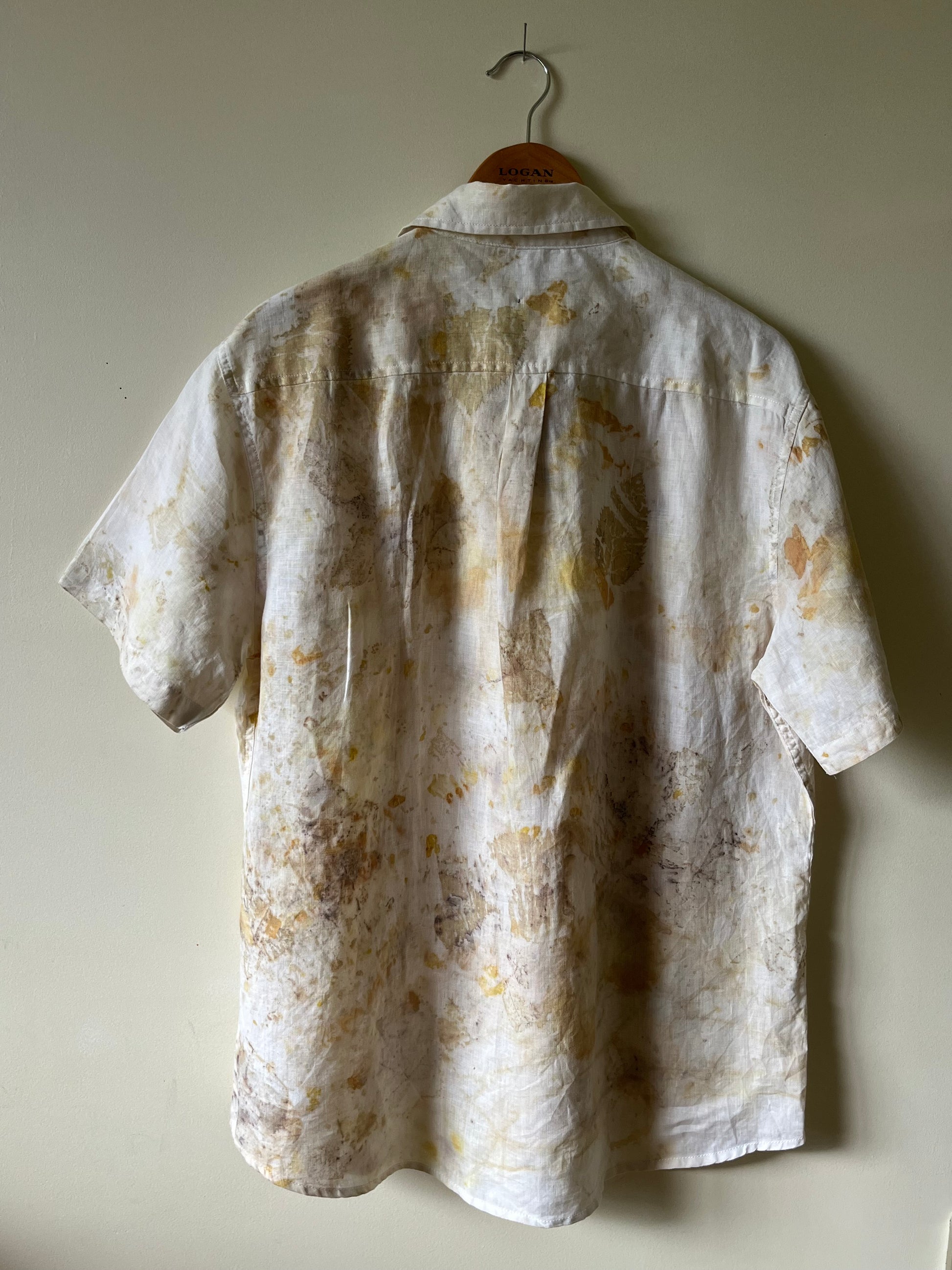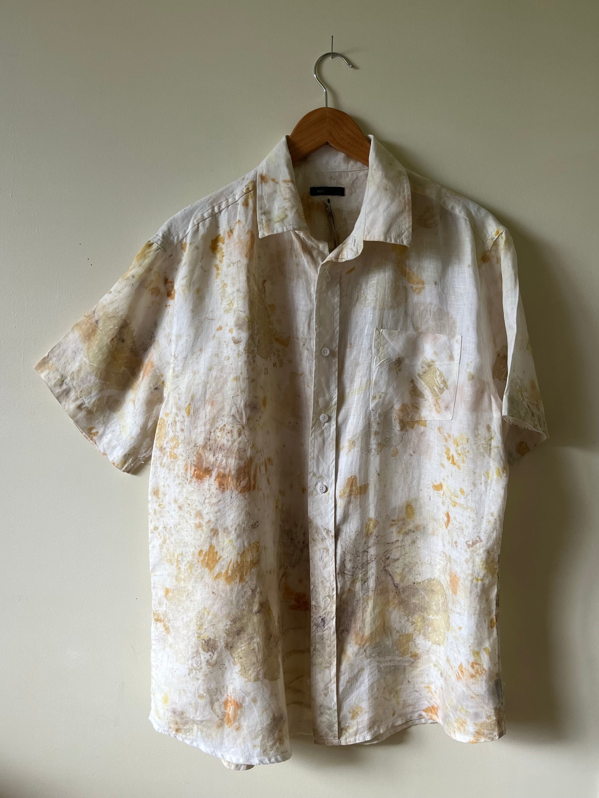This garment has been eco-printed and bundle-dyed using natural processes and plants.