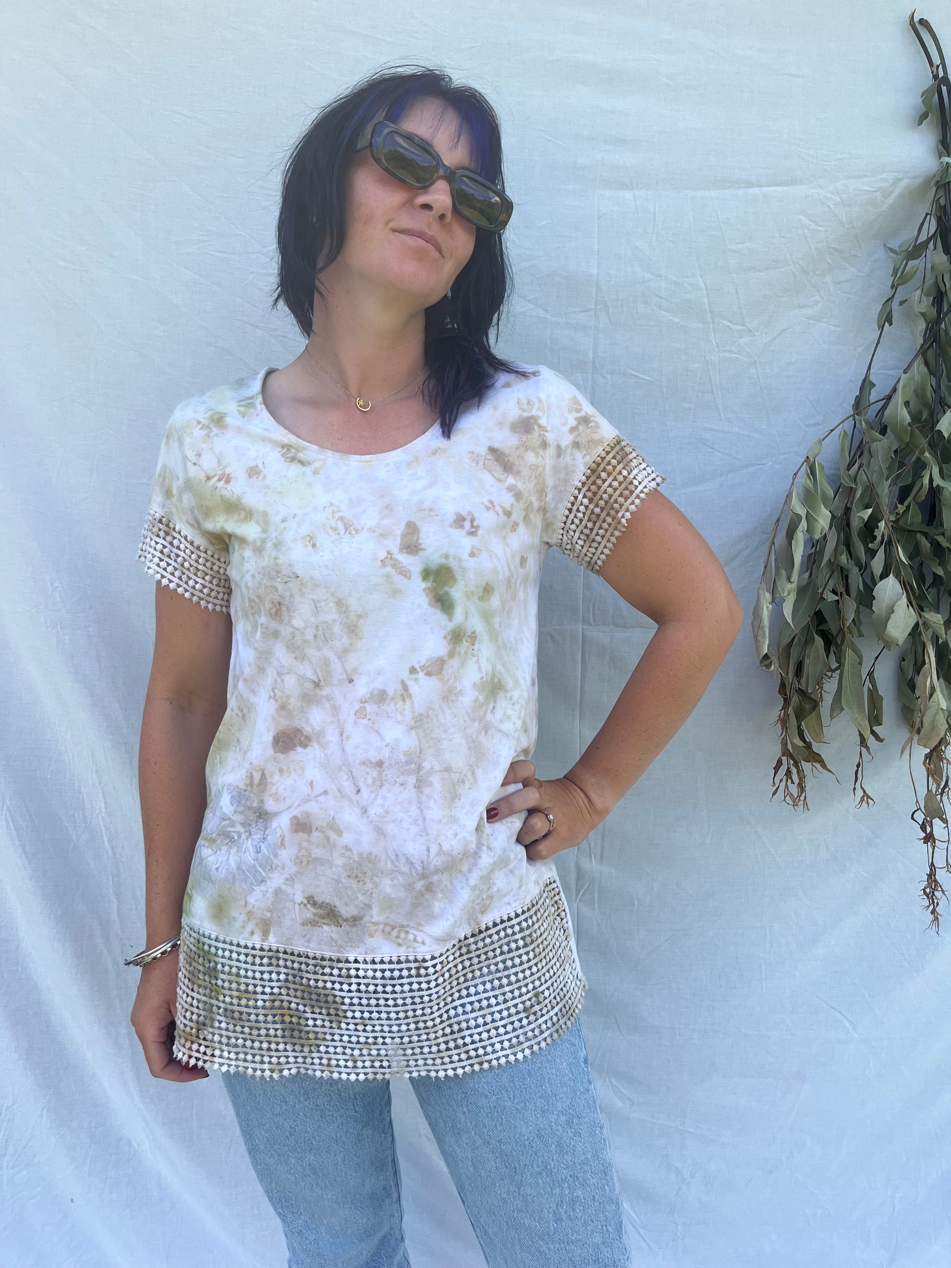 This garment has been eco-printed and bundle-dyed using natural processes and plants.